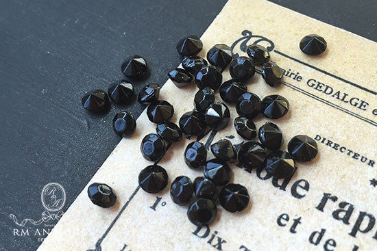 VP-3377 17SS 西ドイツヴィンテージ ジェットブラック ラウンド ラインストーン