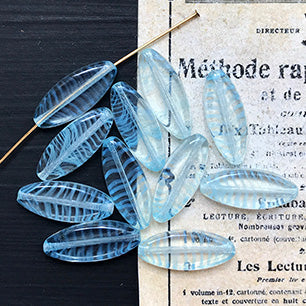 Vintage Czech Glass Blue Oval Bead 20x8mm VP-6688