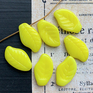 VP-7190 15x10mm チェコヴィンテージ レモンイエロー リーフガラスビーズ
