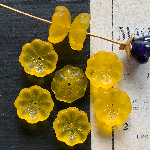 VP-8114 11mm チェコ ヴィンテージ イエロー フラワー ガラスビーズ